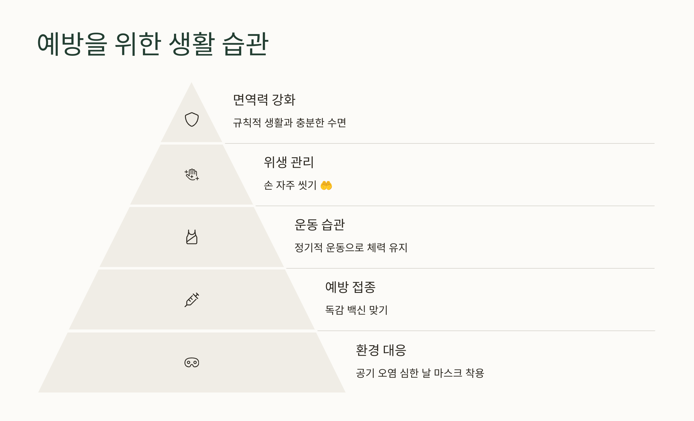 기관지염은 재발이 쉬운 질환이기도 해요. 따라서 예방이 정말 중요해요! 아래 습관들 꼭 기억해두세요: