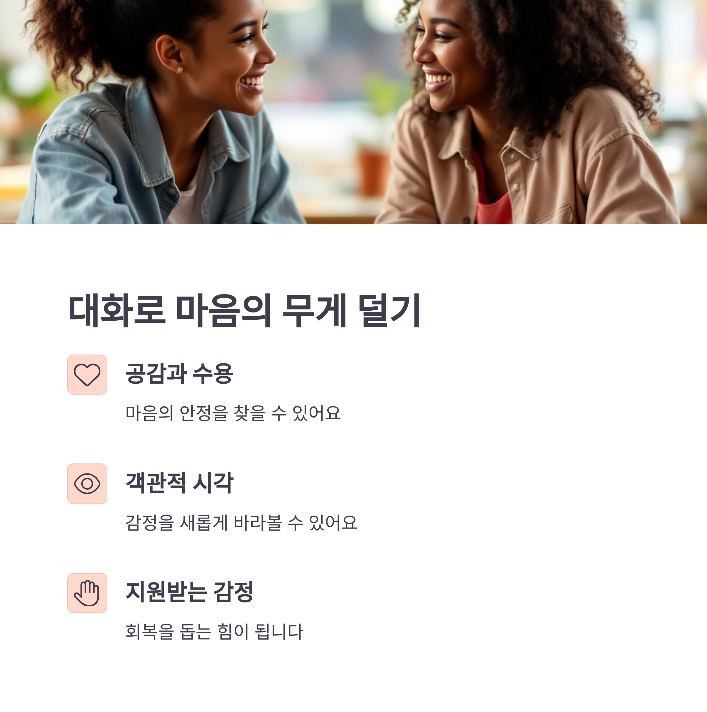특히 대화 중 ‘나도 그런 적 있어’라는 반응은 강력한 정서 안정 효과를 줍니다.