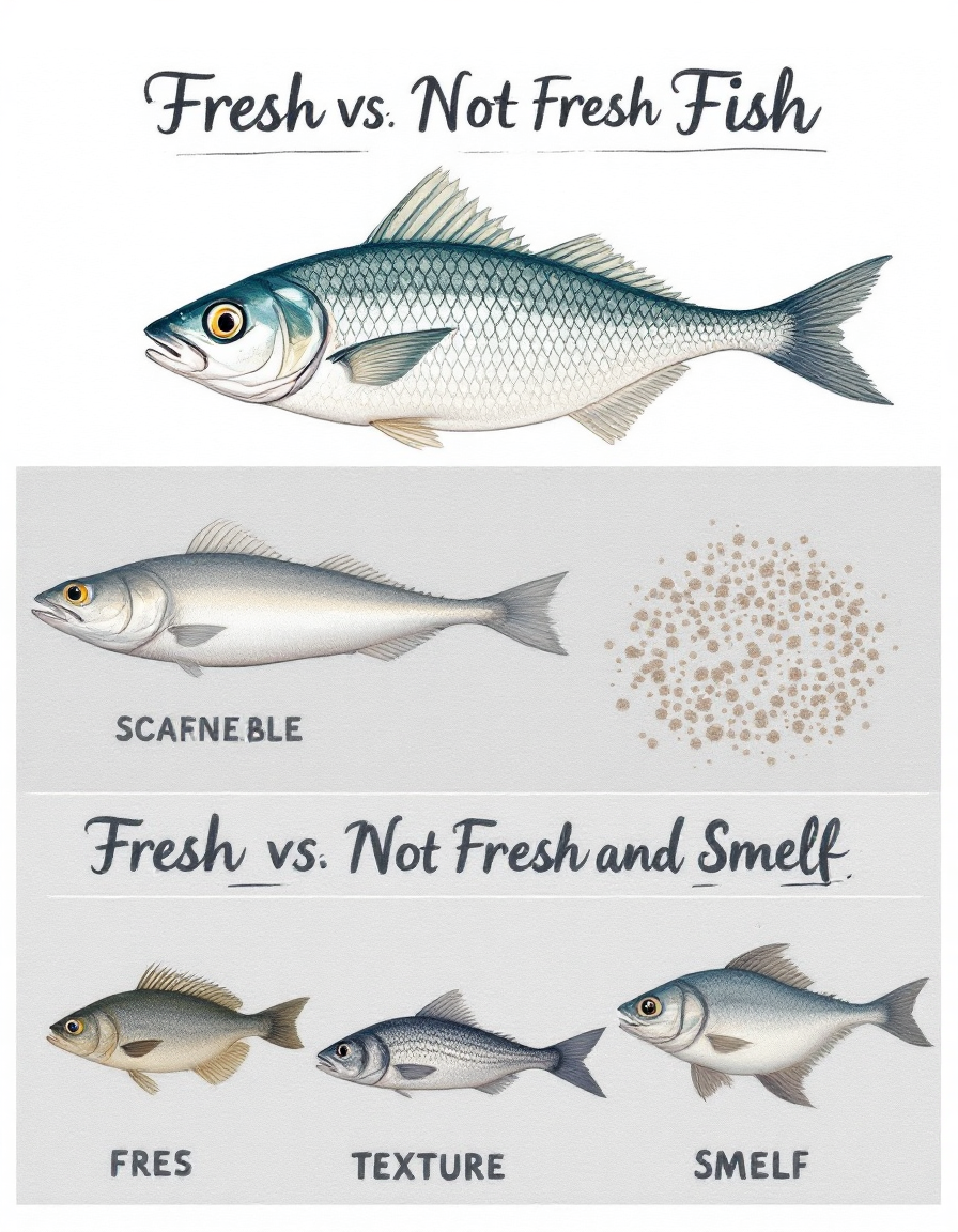 좋은 생선을 고르려면 눈이 맑고 투명한지, 비늘이 반짝이는지, 살에 탄력이 있는지를 꼭 확인하세요! 냄새도 신선도를 가늠할 수 있는 중요한 요소예요. 비린내가 심하지 않은 생선일수록 신선하답니다. 💡