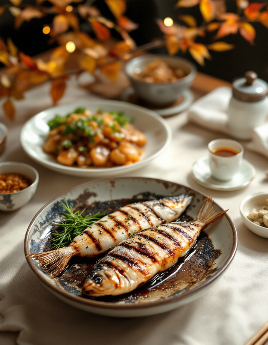 수확의 계절 가을에는 생선들도 먹이를 많이 먹고 살이 오릅니다. 대표적인 가을 생선은 전어, 고등어, 꽁치입니다. 🐟 “전어 머리에는 깨가 서 말”이라는 속담처럼, 가을 전어는 살이 차오르고 고소한 맛이 일품입니다. 고등어도 이 시기에 기름기가 많아 맛있어요.