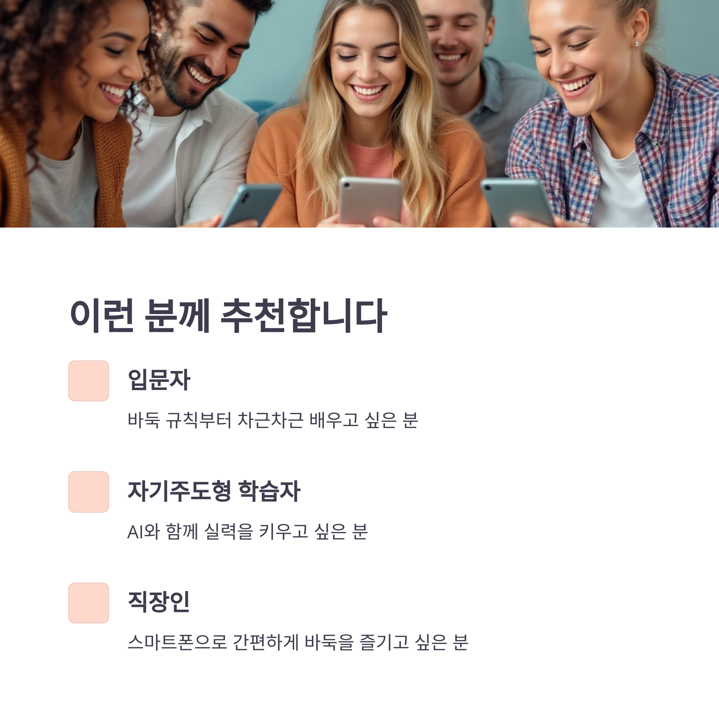- 📱 스마트폰으로 간편하게 바둑을 즐기고 싶은 직장인