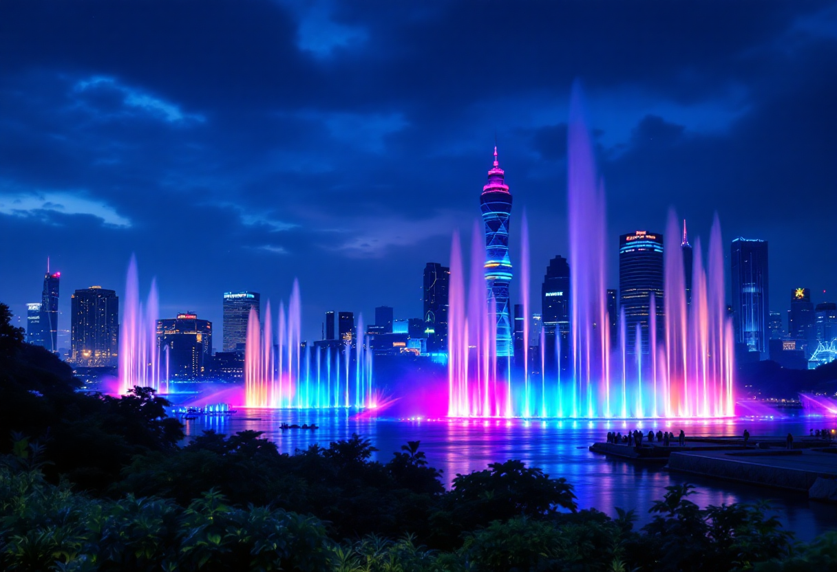 한빛탑 앞에 위치한 음악분수는 축제에 분위기를 더해주는 중요한 포인트입니다. 운영시간은 오후 3시부터 저녁 9시까지 매 정각마다이며, 유일하게 18시에는 분수쇼가 없습니다. 이 점 참고하셔서 방문 시간 조율하시면 더 멋진 장면을 감상하실 수 있어요. 특히 19시 타임에는 노을과 함께 어우러진 음악분수가 정말 아름답습니다.