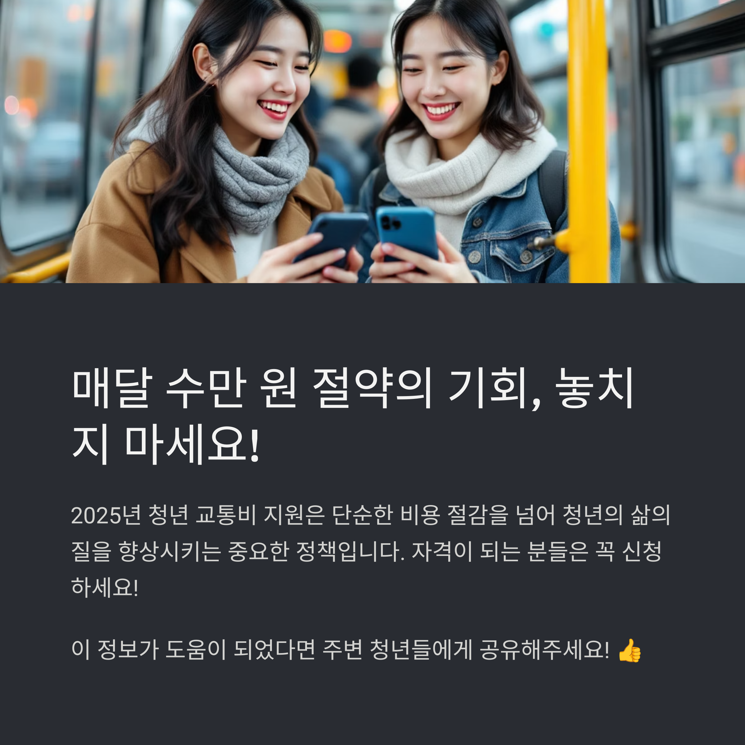 2025년 청년 교통비 지원 제도는 단순히 비용 절감을 넘어서, 정기적인 환급과 할인 혜택을 통해 청년의 삶의 질을 향상시키는 중요한 정책입니다. 매달 수천 원에서 수만 원까지 절약이 가능하므로, 자격이 되는 분들은 꼭 신청하시길 바랍니다.