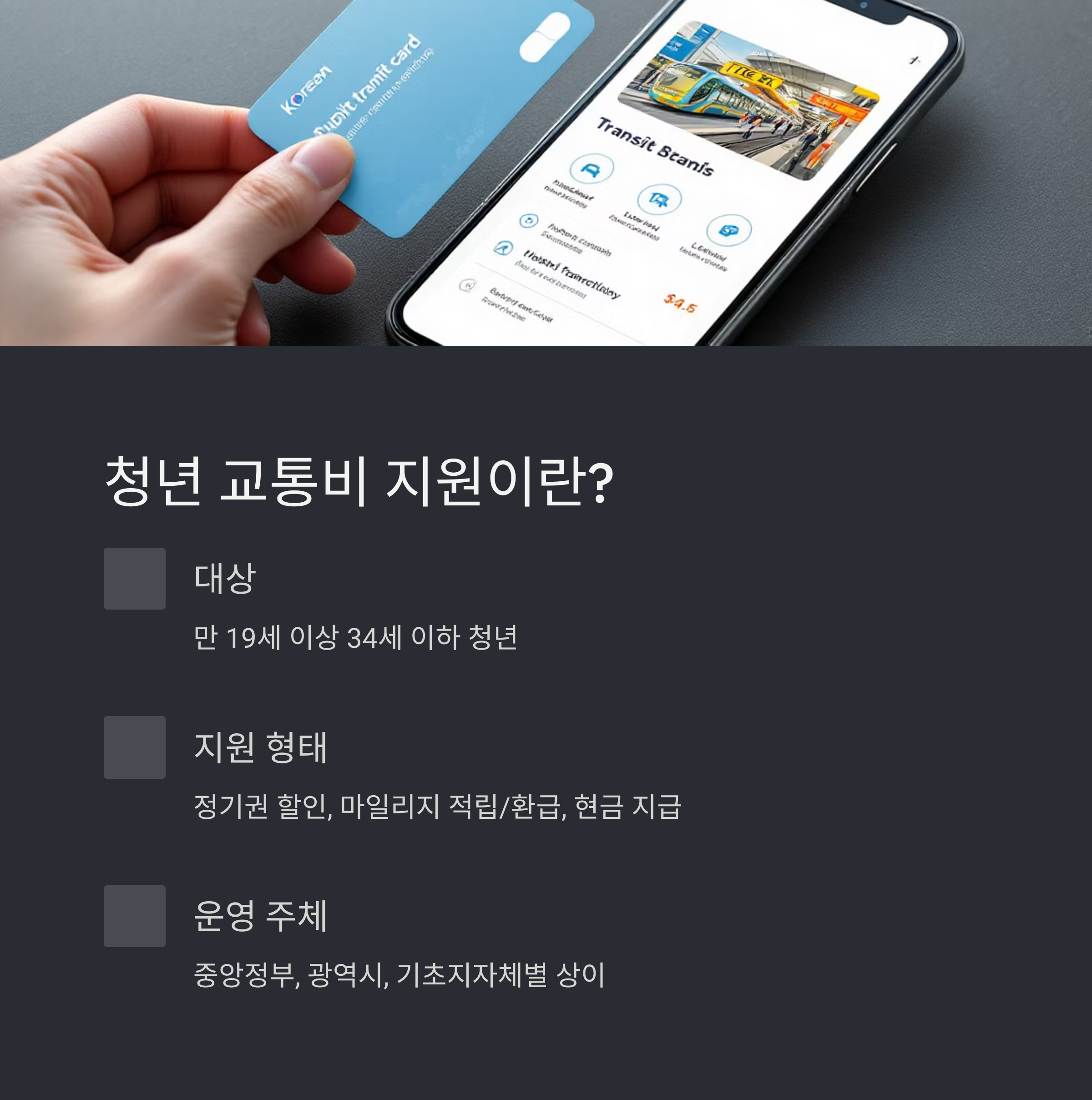 교통비는 통학·출퇴근하는 청년들에게 꾸준히 부담되는 지출 항목입니다. 이에 따라 정부와 지자체는 다양한 교통비 지원정책을 운영하고 있으며, 2025년에는 더욱 확대되어 적용됩니다.